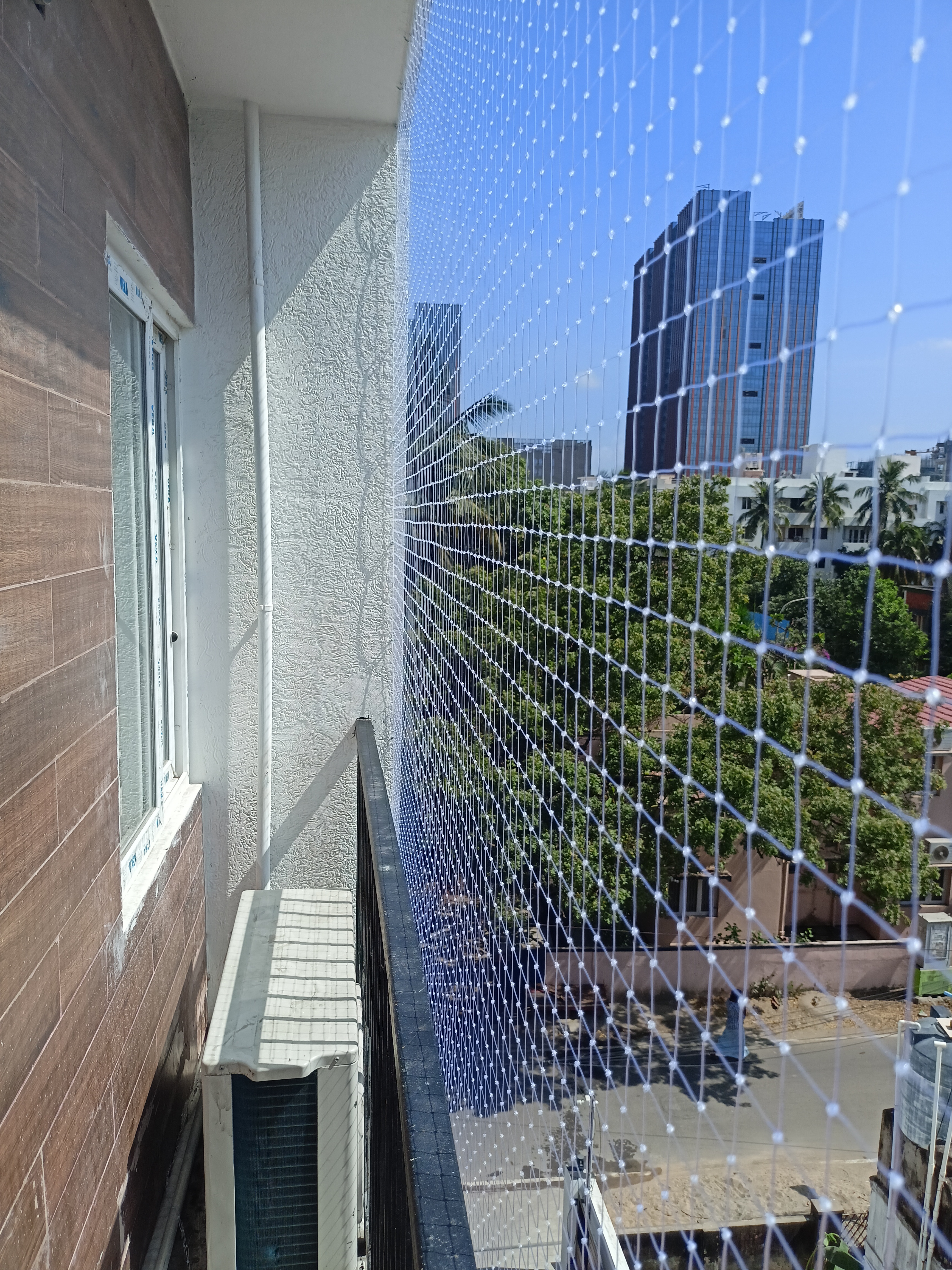 We are the skilled experts in fixing Safety nets for Balcony Safety Nets, Pigeon Safety Nets, Anti Bird Nets, Pigeon Nets for Balconies, Cricket Net Practice, Children Safety Nets, Construction Safety Nets, Duct Area Safety Nets, Building Safety Nets, Industrial Safety Nets, Swimming Pool Safety Nets Stairway Safety nets, Monkey Safety Nets, Terrace Top Nets, Glass Safety Nets, Car Parking Safety Nets, Coconut Tree Nets, All types of Safety Nets, HDPE Nets - Nylon Nets.